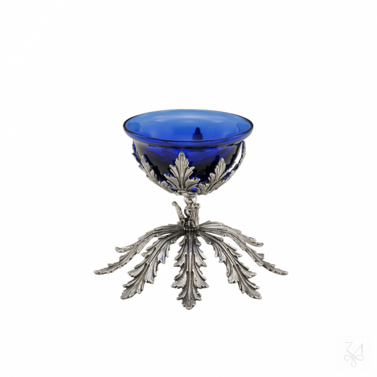 Salt Holder w/ Blue Crystal - Mod. Acanthus Leaves